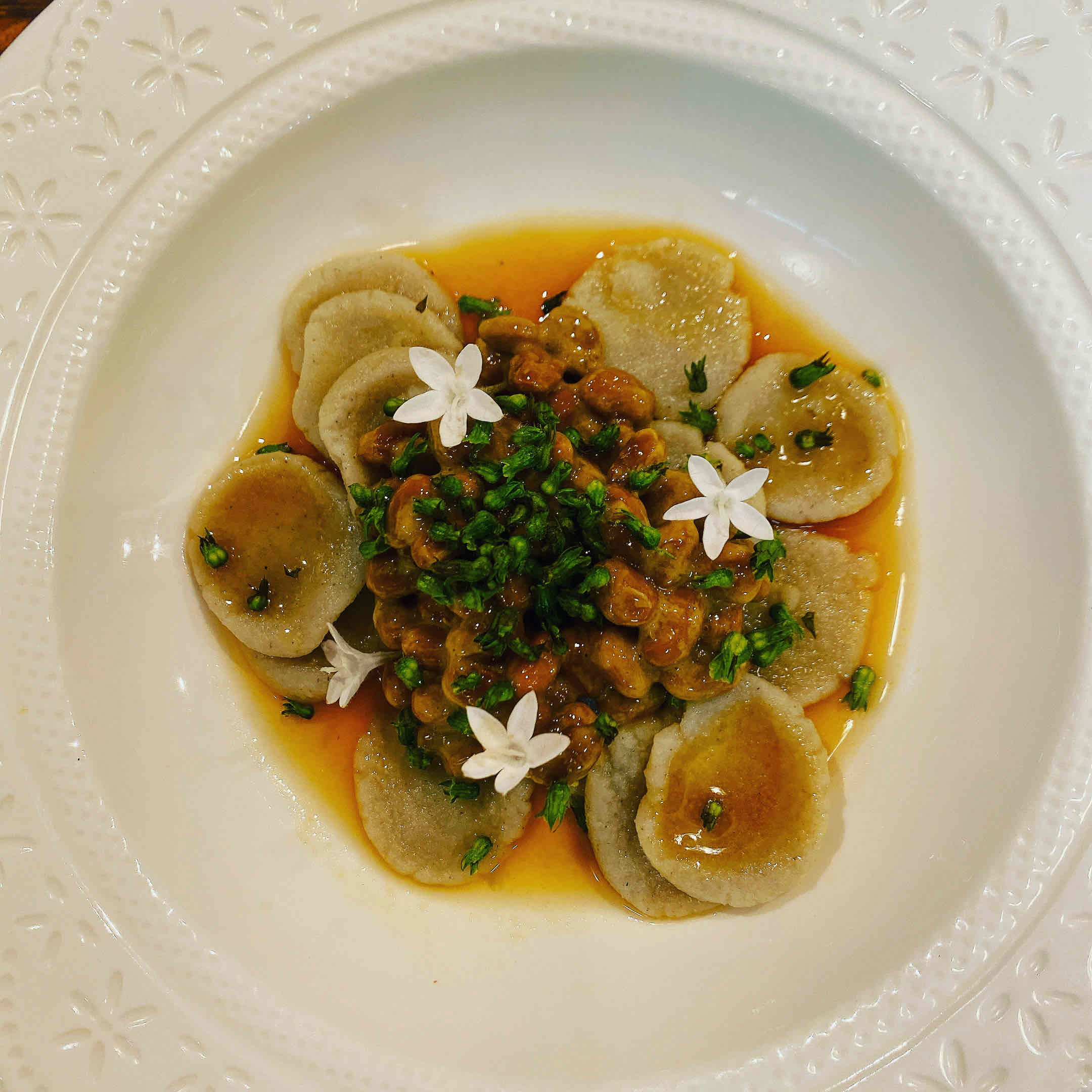 「納豆のペペロンチーノ 手打ちパスタ」